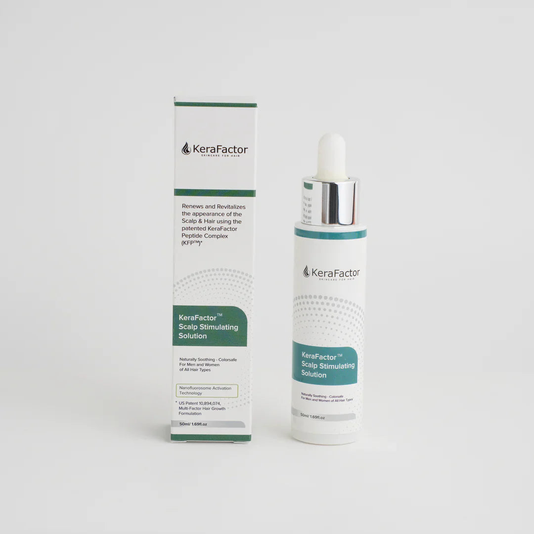 KeraFactor™ Scalp  Stimulating Solution is a highly concentrated formula of growth factors and compounds for rejuvenating the look of hair and scalp. The dropper gives the ability to apply a daily dose of growth factors at home.